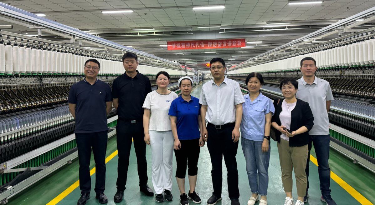 随后,在我校校友、咸阳纺织集团一分厂党总支书记、厂长杨雯静的带领下,前往咸阳纺织集团一分厂梦桃班组进行参观学习,并与梦桃小组第十四任组长王丹交流学习,聆听杨雯静讲解纺织厂的工作流程、产能以及近年来的发展。