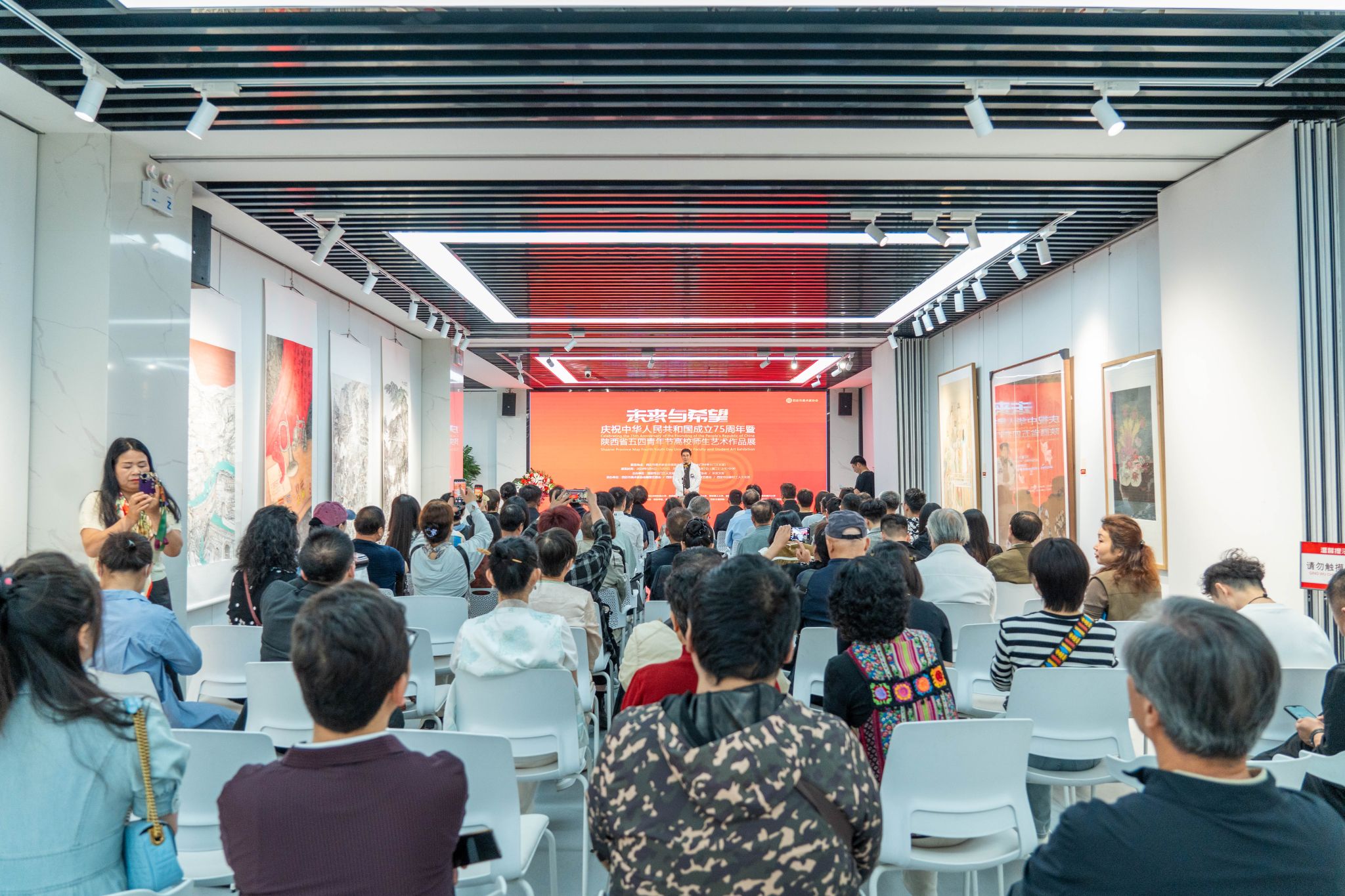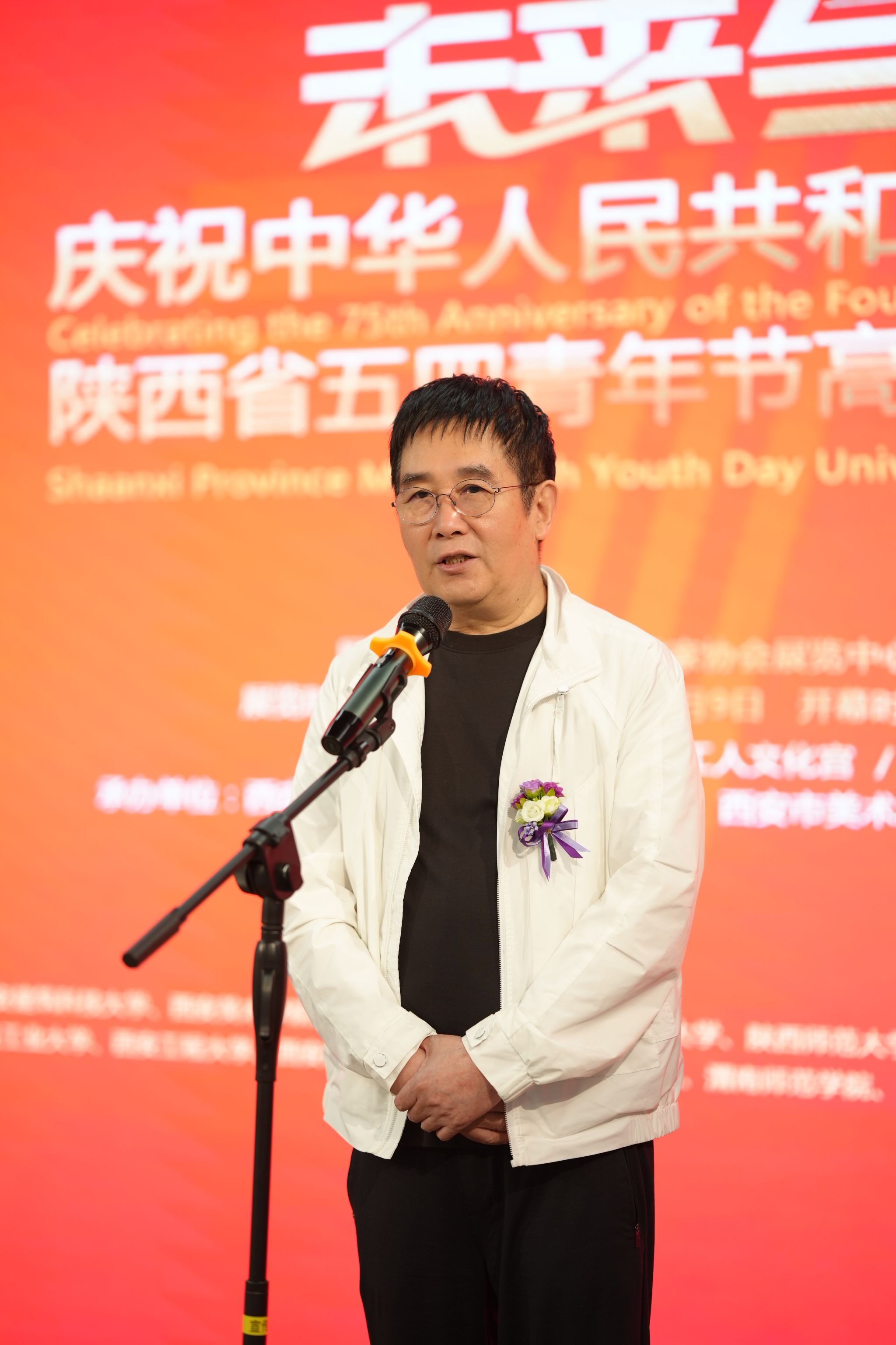 5月7日上午十点,“未来与希望”庆祝中华人民共和国成立七十五周年暨陕西省五四青年节高校师生艺术作品展在西安市美术家协会展览中心展出。陕西省美术家协会副主席蔺宝刚,西安市美术家协会主席杨霜林、西北大学艺术学院院长郭琳、西安交通大学米兰理工大学联合设计与创新学院院长蒋维乐,西安工程大学捷克论坛