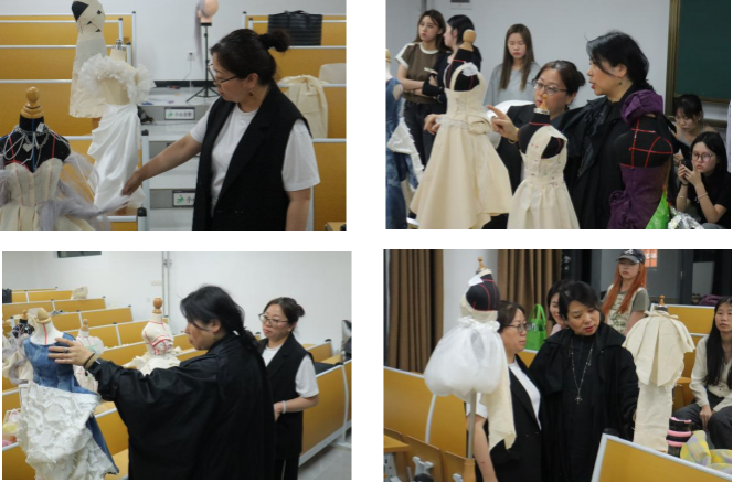 4月25日下午18:30,比赛在金花校区1-103教室举行。比赛现场气氛热烈,同学们热情高涨,纷纷拿出自己的看家本领,在规定时间内完成了与主题相关的立裁创作。本次比赛要求同学们自备人台、布料,并明确规定了不得使用电子产品参考的规则,以确保比赛的公平性和真实性。比赛限时1小时完成作品,同学们争分夺秒,充分发挥自己的创意和专业技能,创作出了一件件别出心裁的立裁作品。