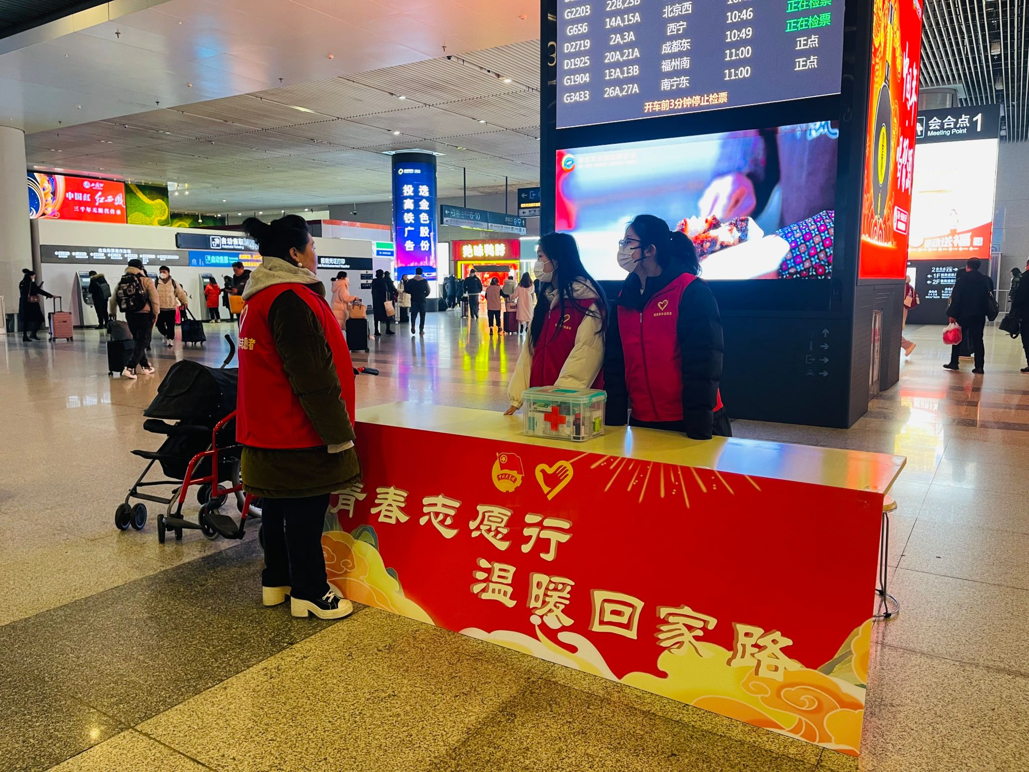 青年志愿者协会积极响应号召,开展服务春运“青春志愿行,暖冬回家路”公益活动,第一批志愿者从1月26日开始进行服务宣传,目的是为广大旅客提供更加优质、便捷的服务,让旅客在乘列车出行过程中感受到更多的温暖和关怀。