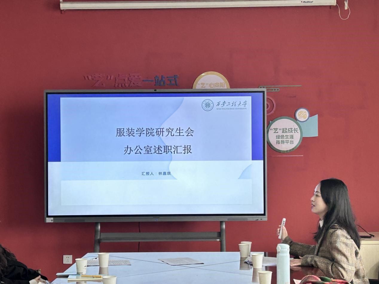 研究生会在服装楼党建办公室召开2023年度工作述职报告大会,旨在回顾过去,为新一年做好准备。会议由院研究生会主席团成员李小峰主持,院研究生会全体成员参加了会议。