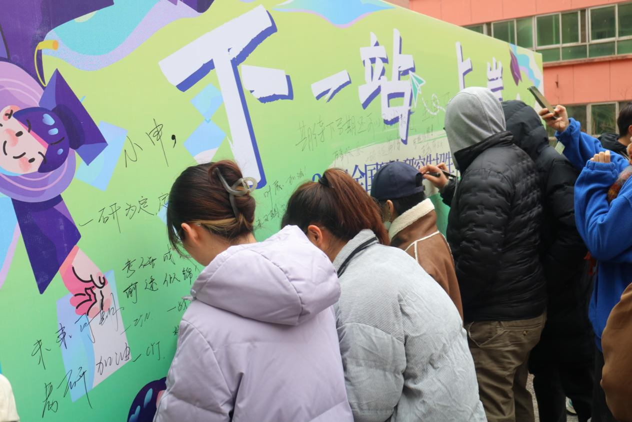 在金花校区服装楼前举办为期一周的“2024,我们一研为定”考研签名活动。为考研学子准备了特别的礼物,送上了温暖的问候与亲切的祝福。