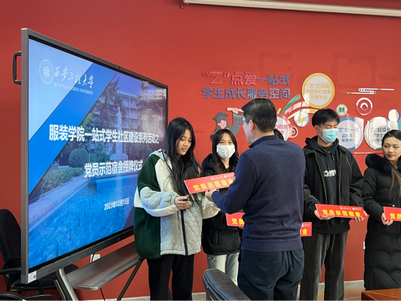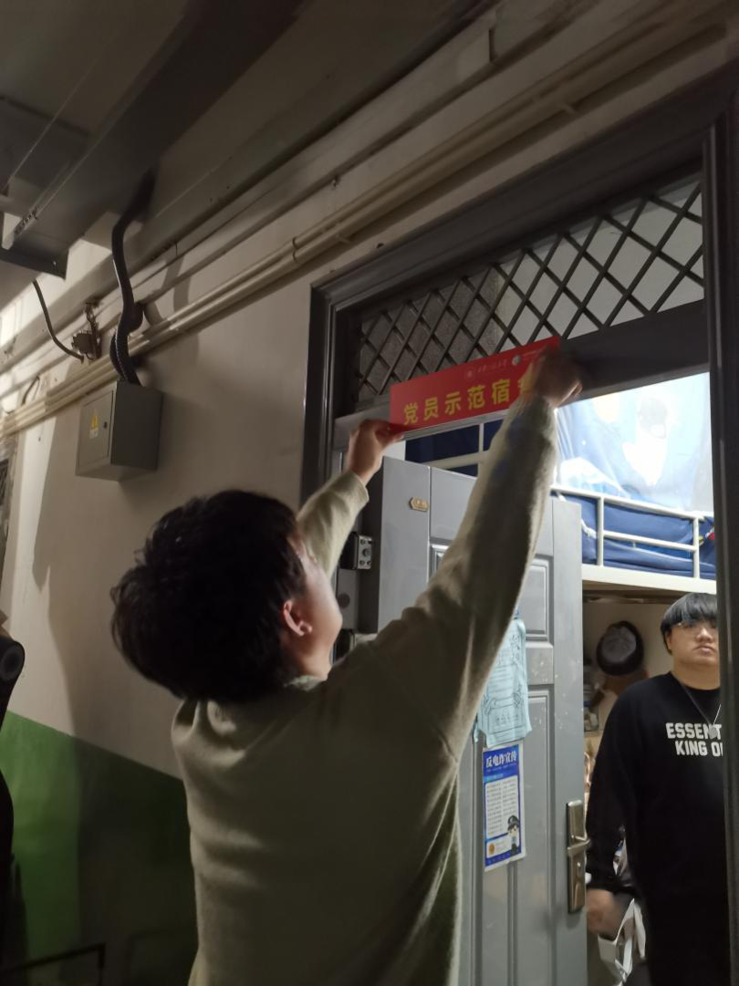最后,苏博为示范宿舍代表逐一授牌,郭欣欣、吴艳杰前往学生宿舍为党员示范宿舍挂牌。参加活动的党员学生纷纷表示,开展党员示范宿舍授牌、挂牌活动,使他们感受到作为一名共产党员的光荣和沉甸甸的责任,要自觉提高思想觉悟、接受同学监督,弥补不足、提高素质,带动身边的同学积极向党组织靠拢,更好发挥党员的先锋模范带头作用,营造你追我赶的学习氛围,以学生党员的先锋模范作用带动寝室文明进步。
