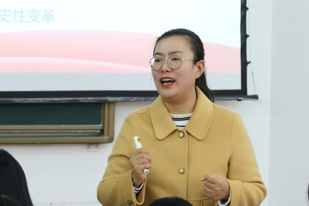 孙晨倩此次团课的主题是:中国共产党为什么能。她以学生近期积极提交入团申请书、入党申请书的现状引入,向同学们详细讲解了中国共产党成立100多年以来的历史和不同发展阶段,“开天辟地”创造了新民主主义革命的伟大成就,“改天换地”创造了社会主义革命和建设的伟大成就,“翻天覆地”创造了改革开放和社会主义现代化建设的伟大成就,“惊天动地”创造了新时代中国特色社会主义的伟大成就。孙晨倩以焦裕禄、黄文秀等不同时代先进党员的事迹为例,希望同学们能想清楚为什么要入团、入党,已经入团、入党后应该怎样做,引导同学们以第二个百年奋斗目标为方向,不断提高自身本领,为中华民族伟大复兴贡献青春力量。