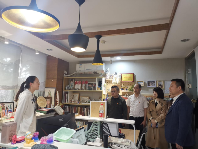 党建活动室、服装楼和我校大学科技园区。大学科技园时尚创意中心张欣刚陪同并详细介绍了大学科技园的建设、管理模式、成果转化等情况。