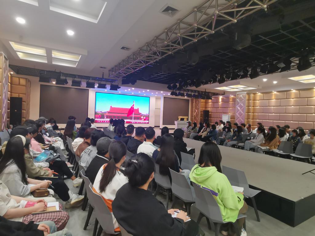 在服装楼表演厅举办“在党的发展历程中汲取智慧和力量”师生联合主题党日活动,邀请马克思主义学院赵鹏副教授做专题讲座,学院全体党委委员、班子成员、党支部书记、副书记及第十八期入党积极分子参加了活动,活动由专职组织员吴艳杰主持。