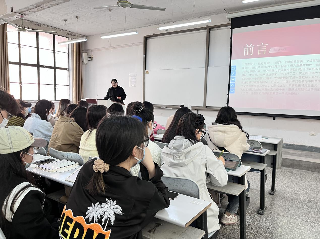 本科生服艺第二党支部全体党员在金花校区主楼126教室组织开展“学习新党章,做新时代合格共产党员”主题党日活动。会议由党支部书记王丽丽主持,支部全体党员参加本次学习活动。