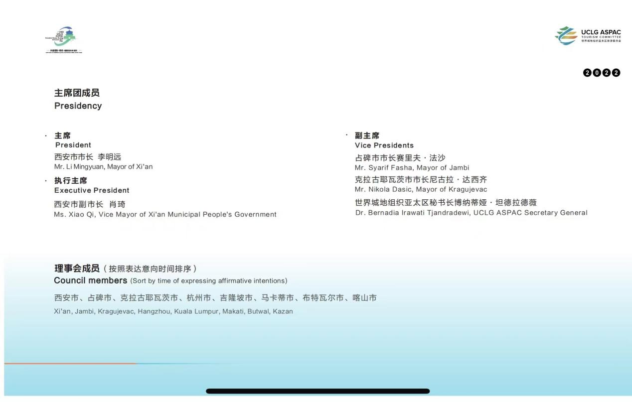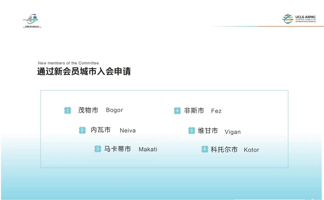 此次会议成立了世界城地组织亚太区旅游委员会的管理机构,发布了旅游委员会会标及年度工作计划,会上通过了新会员城市入会申请,壮大了组织力量,进一步助力会员城市间文化和旅游交流互通,为会员城市间文化和旅游产业深度融合发展增添新动力。