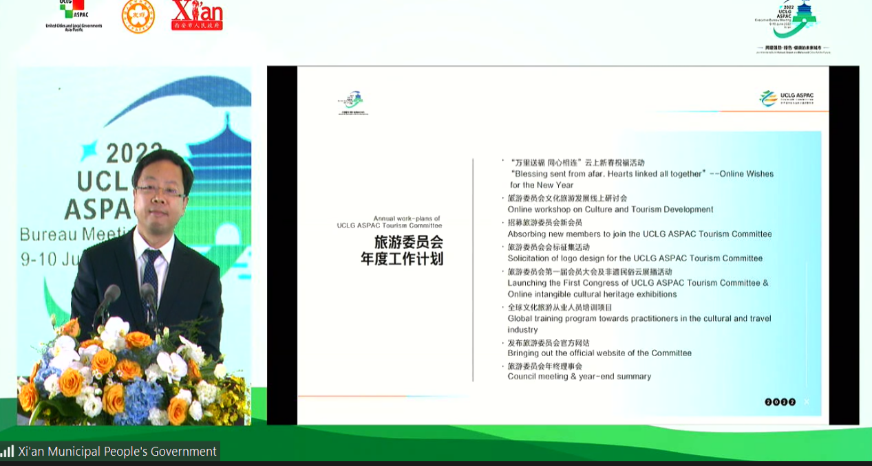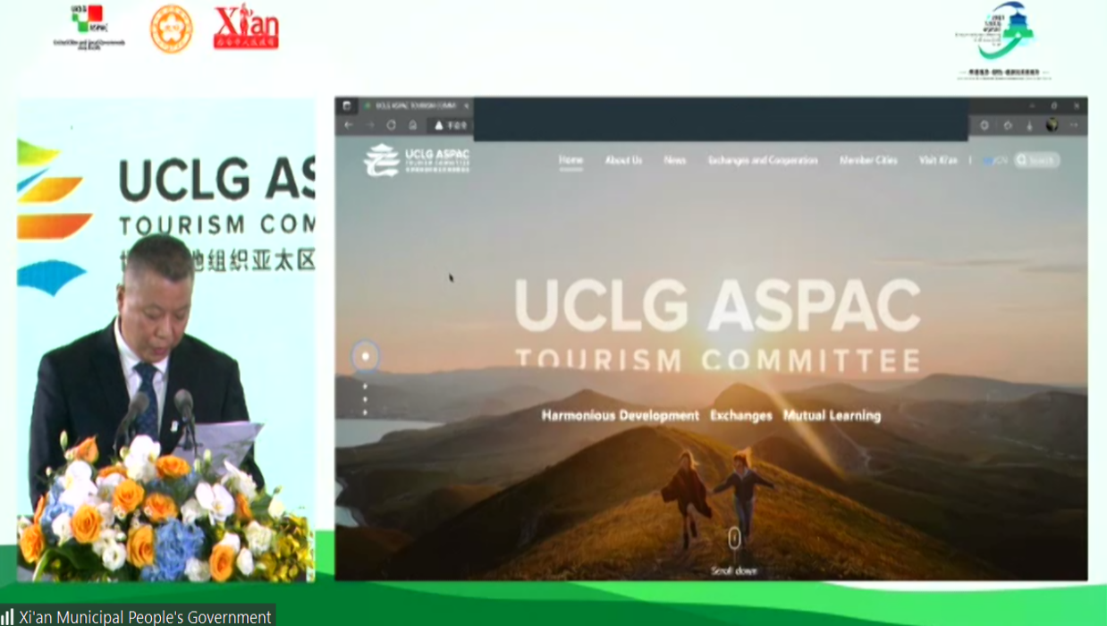 西安市外办主任强盛介绍了世界城地组织亚太区旅游委员会官方网站的建设情况,并表示下一步将充分发挥门户网站城市宣传、文旅活动及品牌推荐等功能,在“云端”架起文旅交流合作的新桥梁。