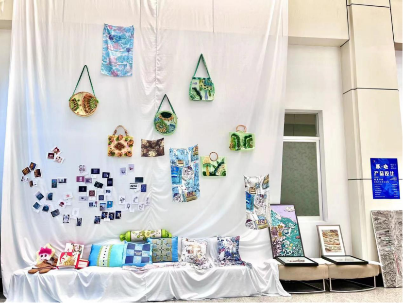 本次交流展通过线上线下结合的方式,从在校本科生的优秀课程设计作品中遴选展出160份作品,包含绘画,平面设计,创意立裁等多种艺术形式。经过多方沟通和协调,对展厅内不同艺术形式的作品放置进行了区域划分,以便观展人员能够有方向、有对比的进行观看。开展期间,捷克论坛