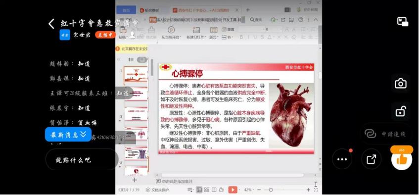 三全育人导师团指导青年志愿者协会活动项目部于3月21日开展了红十字急救知识线上宣讲会,本次宣讲会特地邀请到了西安市临潼区红十字会急救培训师宋世君老师为同学们讲解急救知识。