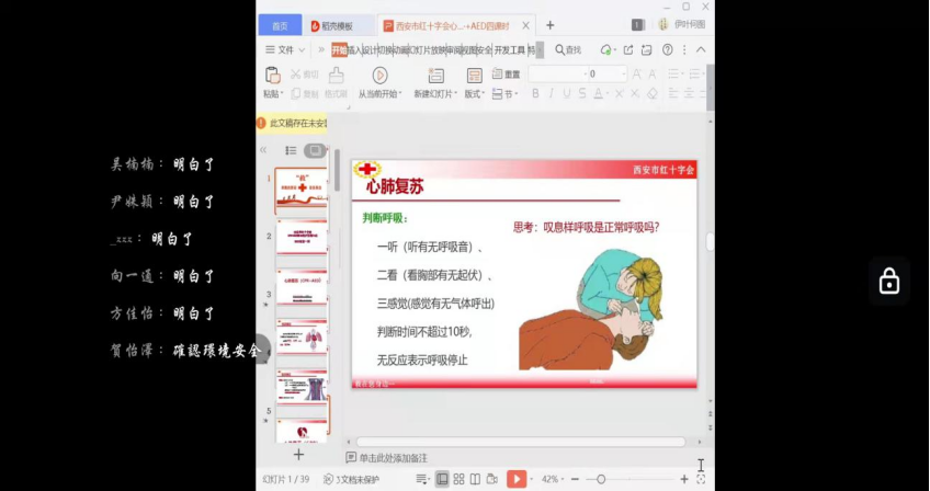 此次线上宣讲,使学生们有效的掌握了急救知识,进一步提高了大家的急救意识。在今后的生活中,面对突发情况,能更好的运用这些急救知识进行自救或者互救,运用现场优势确保自己和他人的健康,将意外伤害降到最小程度。