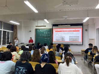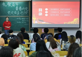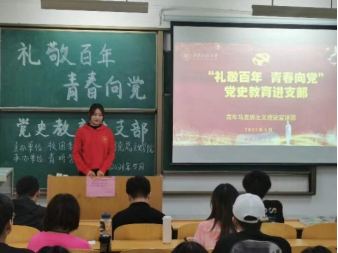 、校青听学社承办。辅导员王盼在活动前进行动员。他说:“党的历史是最生动、最有说服力的教科书,希望各团支部要把习近平总书记在党史学习教育动员大会上的重要讲话精神落到实处,全体团员青年要学党史、强信念、跟党走。”随后,10名宣讲员着统一红色制服,青春激昂地展开声情并茂的宣讲。从“学百年党史,悟红船精神”,到“‘初心赴使命,热血写春秋’的革命年代共产党员”;从“社会发展史”到“改革开放史”;从“总结脱贫攻坚经验,弘扬脱贫攻坚精神”到“实施乡村振兴战略” ……每一间教室的宣讲现场,既有生动的故事,又展示蕴含其中的道理,响起阵阵掌声。团总支书记马薏雯点评:“今晚的自习教室‘含金量’满满。同学们认真努力的‘淘金’身影让我深感欣慰。这次活动意义非凡,既是对马克思主义学院10位研究生宣讲员专业学习的检验,又是对我们大一学生党史知识、思想政治意识的强化。”