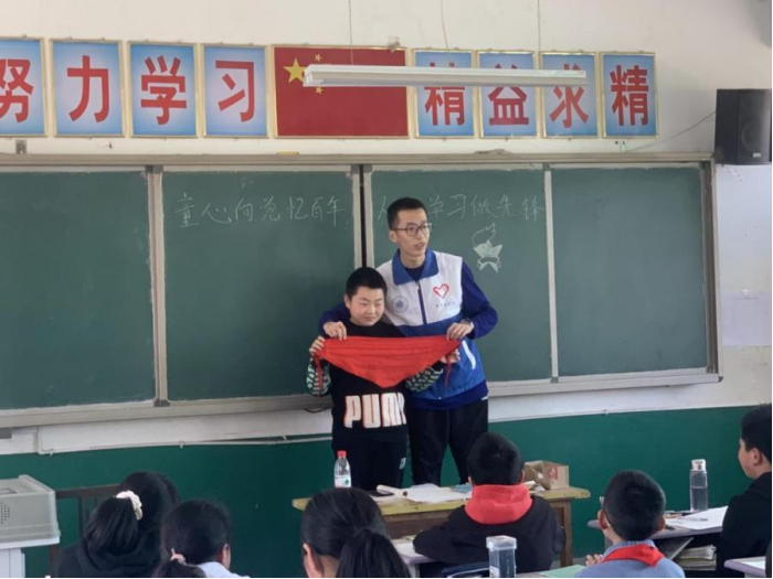 在本次活动中,志愿者们克服突发停电的影响,及时调整支教方案,向接管的6个无课班级的小学生讲解中国少年先锋队的由来与发展,通过《小萝卜头》、《草原英雄小姐妹》等经典儿童红色历史故事,加深孩子们对党史的了解。小学生们认真聆听、积极互动,与大哥哥、大姐姐齐唱红歌,赞颂祖国。志愿者们还发挥专业特长,带领孩子们绘画中国少年先锋队队徽、队旗,边画边讲她们所代表的含义。支教活动在寓教于乐的充实安排下获得师生的肯定与感谢。