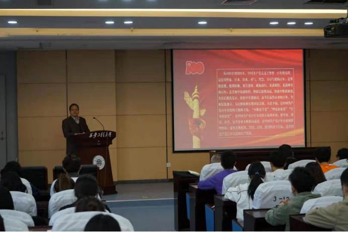 随后,由朱君强主讲了《中国共产党的光辉历史和当前全党总的形势概述及对大学生的要求》党史学习教育党课。他从中国共产党的光辉历史、当前全党的形势概述以及对大学生的要求三个方面进行了讲课。朱书记强调说,党有党的章程和组织原则,同学们作为积极分子要加入党组织,就要认真学习和履行党的规章制度,同时要明白为什么要学习党史,就是要把学习党史作为一面镜子,鉴往知来,鼓舞斗志,明确方向。最后,朱君强对大学生提出殷切期盼和要求:“大学生应不忘初心、牢记使命、永远奋斗。看历史,就会看到前途。学习重温中国共产党百年历史,我们应该坚定中国共产党历史自信,同时,坚定中国人民和中华民族未来自信!”