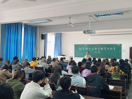 本科生2019级在金花校区举行了新学期学生安全教育暨学风建设教育大会。辅导员孙晨倩、李涵博和谭赛江以及2019级各班班委参加了会议。