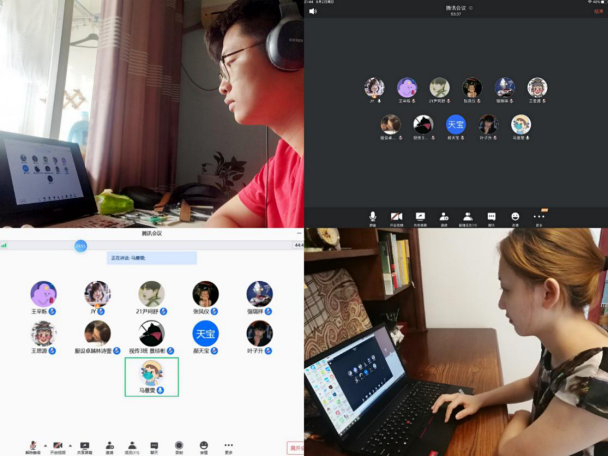 (实践团成员在微信群、腾讯会议上结合调研数据进行动画脚本和视频制作探讨)