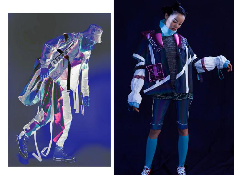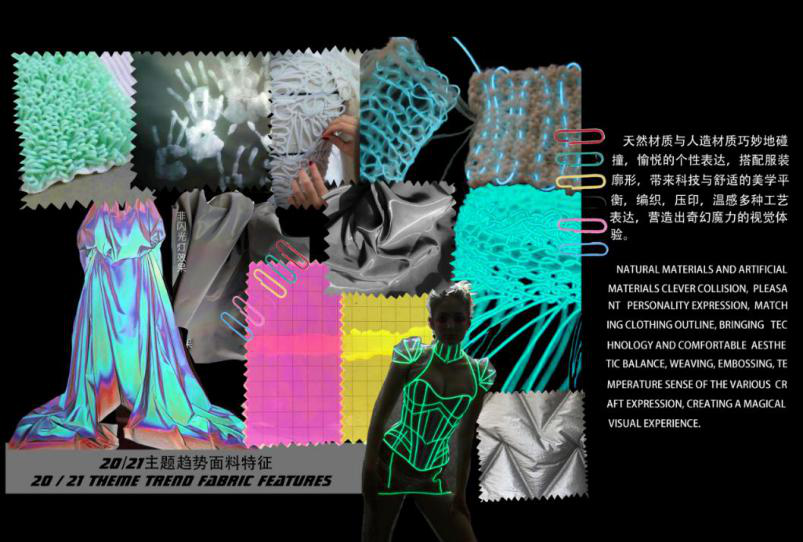 个人作品简介:以《唐.未央》是本次毕业设计的大主题,未,无;央;尽,尽头。未央:未完、待续、无边无际之意。《starry night》意为繁星点点,提取唐中宗时期的敦煌星图作为灵感,以圆圈和实点两种形式绘出恒星,从星图着手探索星空世界,探究星图并进行提炼运用在系列设计中。运用智能led冷光线与编织和面料绘画星图进行再造,穿梭在古代与未来时空中,在感性与冒险的交织中创设了一个关乎灵活感知的奇妙幻觉实验室。如星光一般闪耀,形成一种守护着我们未来的新鲜力量,在满足美观感的同时融入了未来主义风格。