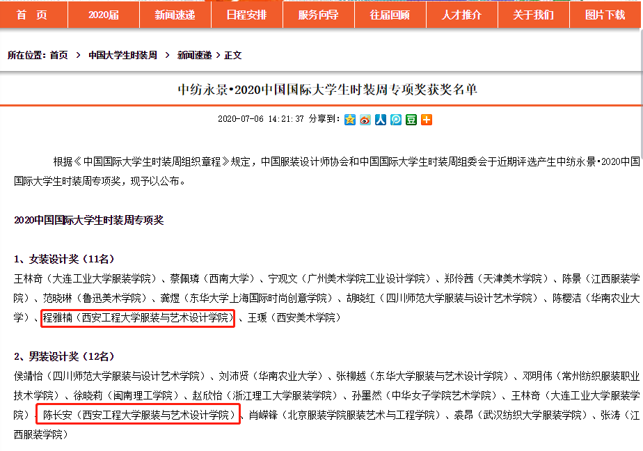 7月5日晚,由中国纺织工业联合会、教育部高等学校设计学类专业教学指导委员会作为指导单位,由中国服装设计师协会、中国服装协会、中国纺织服装教育学会主办,由北京迪百可文化发展有限责任公司联合主办的,为期五天的中纺永景·2020中国国际大学生时装周圆满结束。