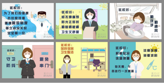 学工办和学工部、研工部在上次制作抗疫表情包的基础上,以研究生和四年级的同学为主要力量,辅以低年级同学,组建制作团队,发挥同学们专业特长,制作了五个系列30余张“返校表情包”,将学生返校后学校的疫情防控的相关要求和有关注意事项通过图文并茂的形式反映出来,同时,还抓住学生返校“进入校门”这个关键环节,制作了“入校流程”动画,帮助同学们了解如何进入校门,提前做好准备,缩短了进入校门的时间。表情包和动画视频经学工部官微和相关学院推广后,已经在师生中广泛传递,取得了较好的宣传效果。