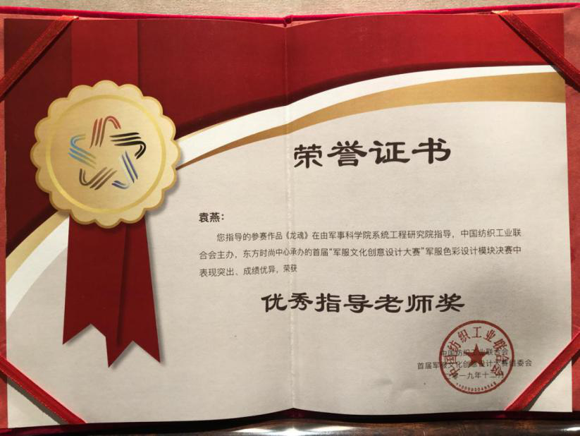 1、由袁燕老师指导,周钰琛、杨晨创作的作品《龙魂》在军服色彩设计模块决赛中荣获“铜奖”;