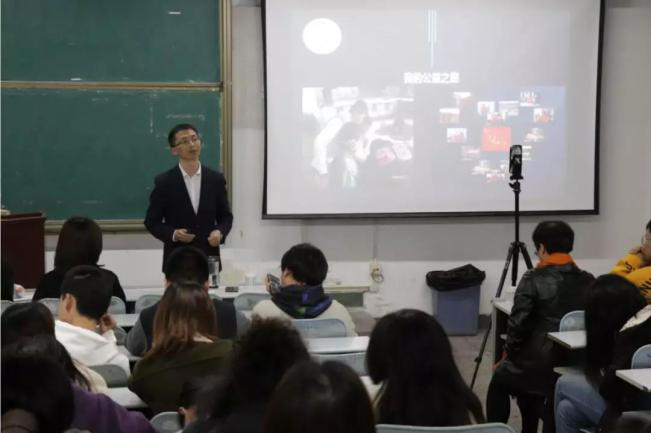 讲座伊始,肖海先生以“我只是一个普普通通的校友”进行自我介绍,拉近了与同学们之间的距离,接着讲述自己的大学生活,肖海先生从大学生的日常出发,告诫同学们要在大学里积极学习知识并参加实践与实习,从而丰富自己,磨练自己。同时肖海先生鼓励同学们要敢于说出梦想,这样才能实现梦想。随后,肖海先生讲述了自己艰苦的创业之路,引发了同学们对于当一个人身处逆境时是否应该继续创业的思考,他循循善诱,让同学们真切体会到在经历过孤独、煎熬、迷茫之后仍然坚持寻找正确的方向的人成功的几率会更大。肖海先生激励同学们:“你要感谢那些让你吃苦的不容易的事情,这样才能使你成长。这一切都是难得的经历,可以给你勇气,让你不再惧怕。”同时,肖海先生告诉同学们:“人生一定要去做公益活动,做力所能及的事情。”肖先生一直热衷与公益事业,他认为这是非常有意义的事情。他希望秉持“传播正能量,传递真善美”的公益精神去做公益事业,为社会奉献自己的力量。