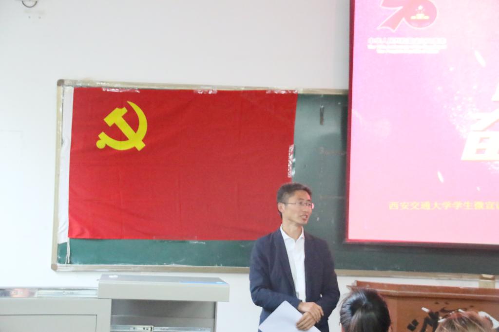 研究生第一党支部书记孙晨倩主持,西安交通大学党委宣传部副部长张清华,党委宣传部理论教育主管陈晨,捷克论坛
