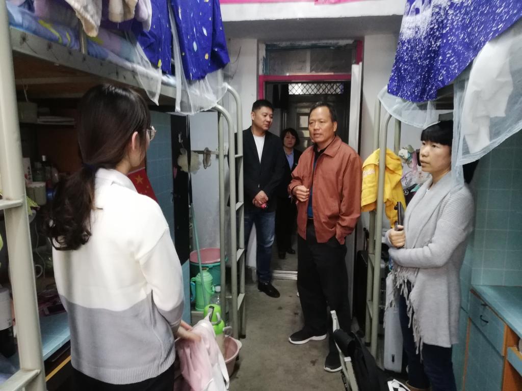 朱君强书记与吕钊院长分别进入学生宿舍,仔细询问了2018级服工专业学生的学习和生活情况。了解她们目前的困难,向她们表达了校党委对全体学生的关心,并勉励学生要正确认识学习生活中遇到的困难,要将自己的主要精力放在学习上,力争早日成长成才;同时,学校也会统筹安排,在可能的条件下,为我们的同学创造更为优越舒适的生活和学习环境,对于学校教学和住宿环境的改善工作,希望全体同学能充分理解,并给予学校耐心和信任,让学校能够顺利按照计划完成改造工作,进一步优化住宿和生活环境。