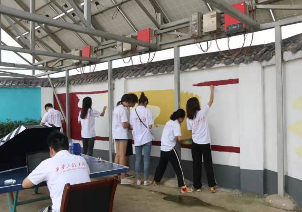 实践队员在画墙绘