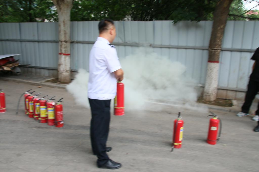 张警官示范灭火器使用