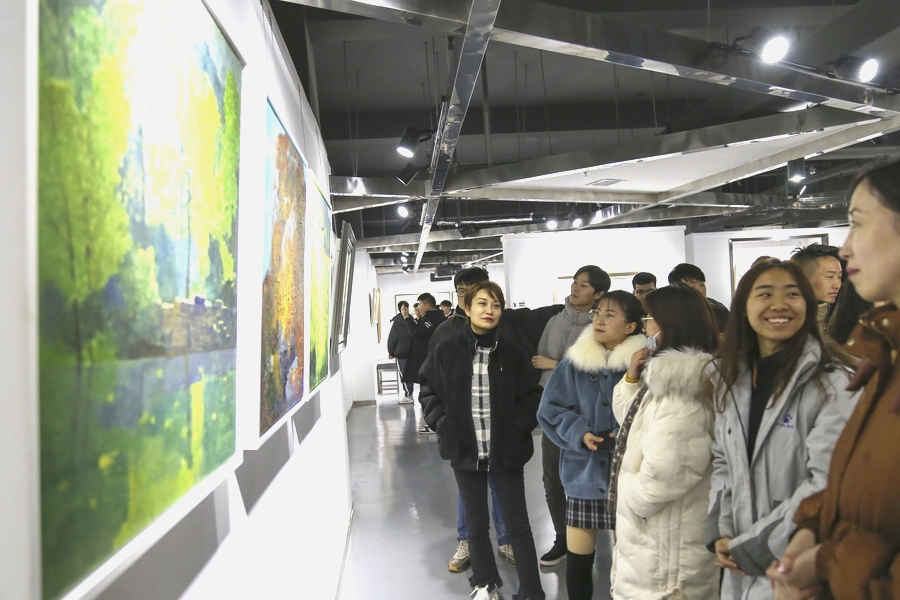 造型艺术系教师和6位校外艺术家作品联展,共50余幅作品,类型涵盖油画、水彩、水墨、版画、综合材料等,作品形式多样,主题丰富,每位艺术家在绘画语言方面都努力探索自己的样式,这个时段正值大四学生的毕业创作,对学生来说本次联展提供了珍贵的交流机会,开拓了学生视野,对学生了解专业前沿动态、加深专业认知至关重要,这也是本次联展努力达到的目的。