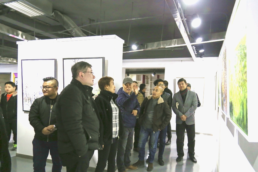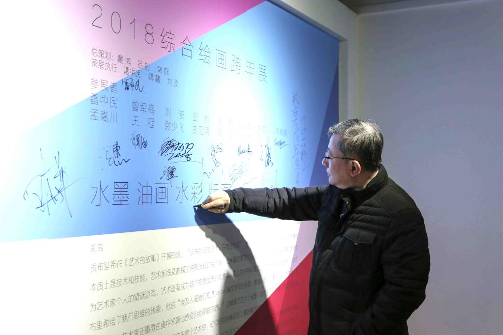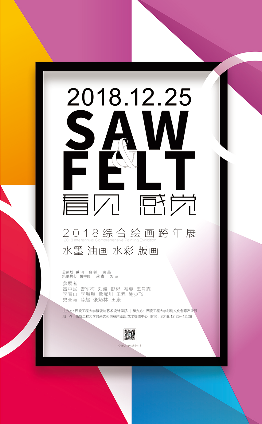 2018年12月25日下午,服装艺艺术设计学院《SAW&FELT 2018综合绘画跨年展》在时尚文化创意产业园艺术交流中心隆重开幕,学院院长戴鸿、党委书记李筱胜、副院长袁燕、副院长田宝华及创意产业园主任吕钊等领导嘉宾莅临现场,与造型艺术系参展教师和6位特邀校外艺术家共同参加开幕式。造型艺术系参展教师冯惠担任主持人,戴鸿院长、李筱胜书记、吕钊主任对本次跨年展给予充分的肯定和鼓励,同时对教师和校外艺术家在专业合作交流上提出期许和要求,鼓励专业教师要更多的举办类似学术活动,联合优秀校外艺术家加大专业交流力度、增加展览密度以增强教学专业效果。造型系教师代表和校外艺术家代表也分别做简单发言,对画展的形式、目的提出了建设性的意见,开幕式结束后师生一百余人参观了展览。