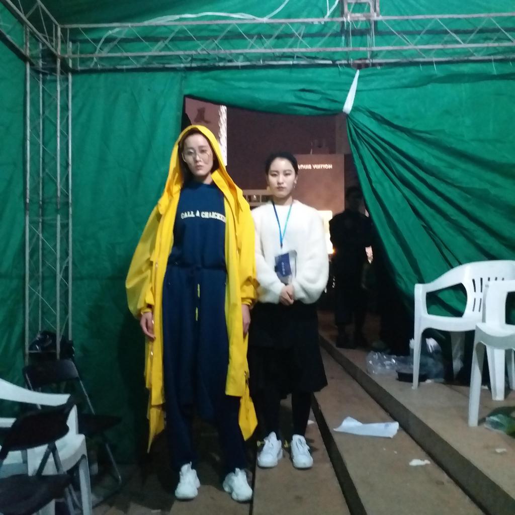 胡艳同学和作品展示模特