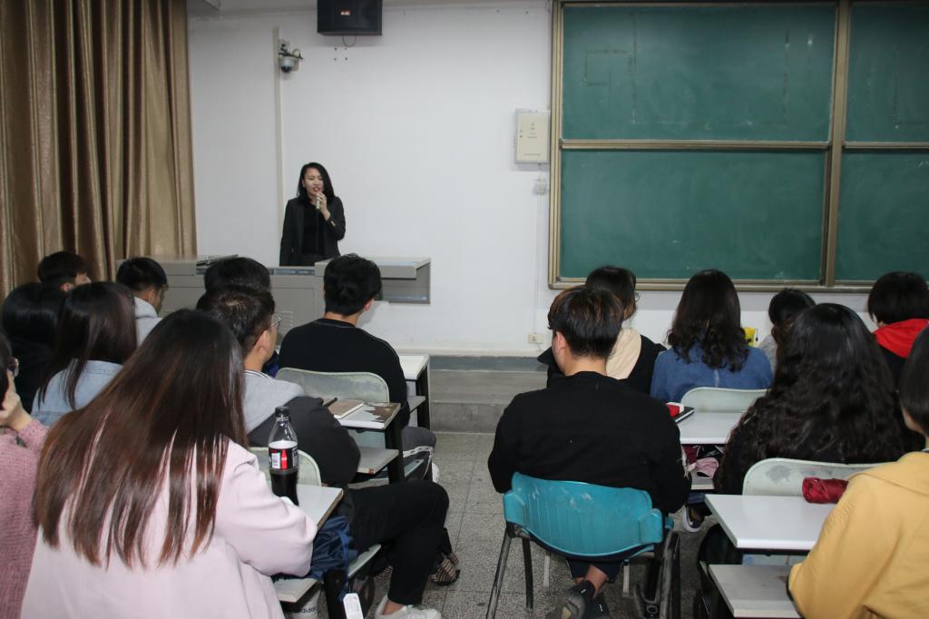 学生对服装市场的了解,加深学生对服装行业演变趋势的认识,2018年10月19日下午,服装商学系在金花校区226教室特邀我校2004级校友、陕西良体才衣服饰有限公司总经理、西安合极服饰有限公司董事长李娇女士作了“定制人生”专题讲座。服装商学系、内衣系共100余名师生到场参加。讲座由服装商学系主任梁建芳主持。