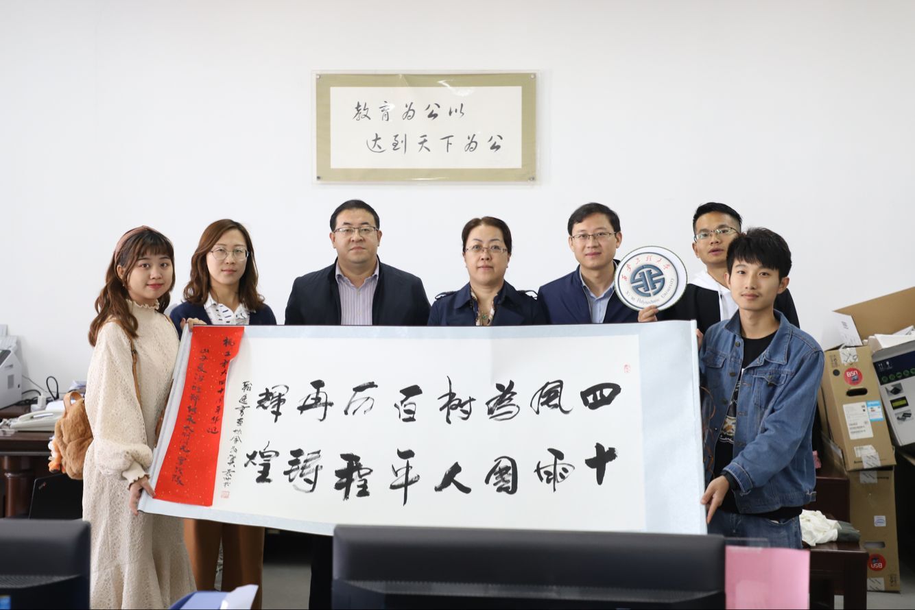 “堆锦传承,太行闪光”暑期社会实践队向母校赠送了校徽和书法作品等暑期社会实践成果,向母校表达了师生欢庆独立建校40周年的喜悦之情。国内合作与校友工作处处长杨永革、校团委书记王晓先与实践队成员进行了交流。