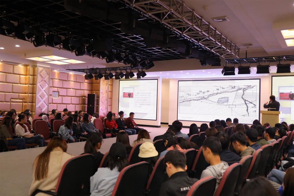 学术论坛第二项由三位青年学者进行学术报告。首先,河南大学副教授董睿博士以《嵩高维岳:北宋帝陵的空间布局》为题,从北宋帝陵的地理位置和周围环境的空间关系角度进行深入解读;其次,武汉纺织大学教师张俊杰博士以纺织服装为切入点,深度解读《面向消费者的智能服装推荐系统》,详细介绍结合人工智能推进服装销售的发展趋势;最后,西藏大学艺术学院王小维博士为在座的老师和同学们带来《浅谈藏传佛教绘画流派》,通过对藏传佛教绘画中壁画和唐卡的两种形式分析,对各个时期流派的藏传佛教五大画派进行介绍,使在座的各位老师和同学深刻认识到藏传绘画流派的独特性。