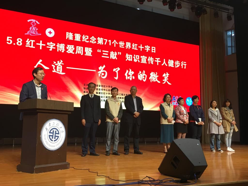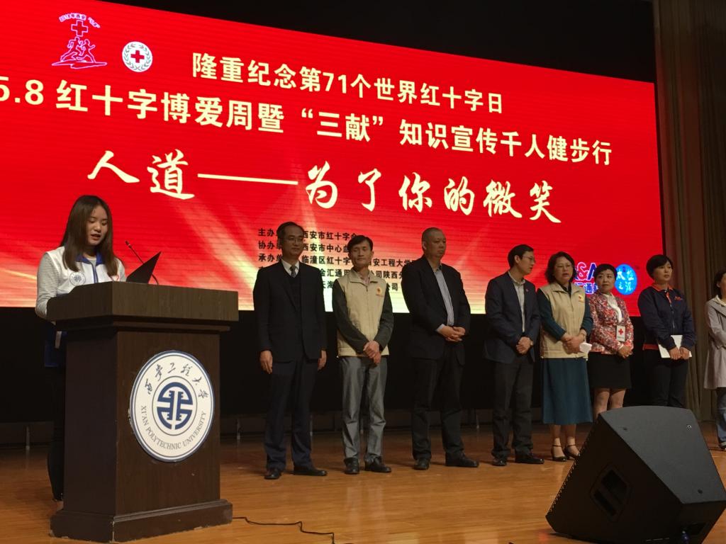 为纪念第71个“世界红十字日”,弘扬“人道、博爱、奉献”红十字精神,2018年5月6日上午,5.8红十字博爱周暨“三献”知识宣传千人健步行活动在临潼校区大学生活动中心成功举办。本次活动由西安市红十字会主办,陕西省造血干细胞库、西安市中心血站协办,临潼区红十字会、共青团捷克论坛