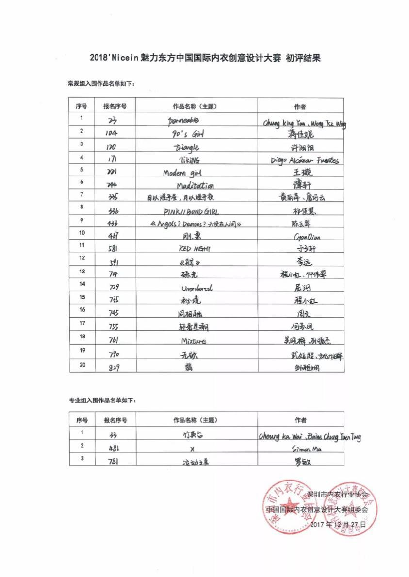2018’魅力东方中国国际内衣创意设计大赛初评结果