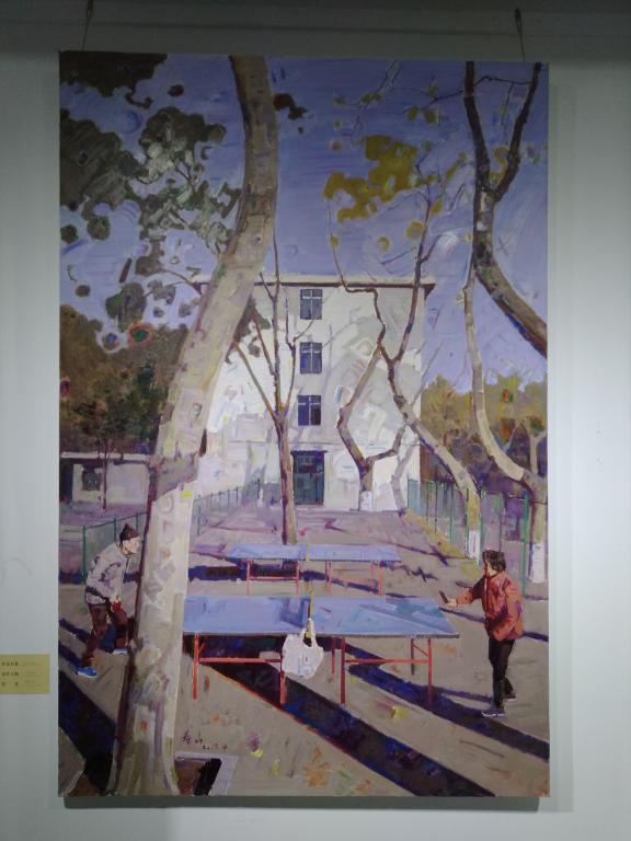 的青年专业教师,均毕业于西安美术学院,在工作之余都潜心坚持绘画创作。此次展出的就是三位老师近两年来的28幅油画作品。他们的作品在整体面貌上都是偏写实的风格,是一种形象直观可见的,从造型、色彩、空间到现实的真切体验,对自然和生活的深入观察。同时,他们三个人的作品又有着各自的鲜明特征和审美趣味,试图在不同的写实语境中找到自己的定位,如现实主义写实、浪漫写实、象征写实、观念写实以及装饰写实等。王肖霏的作品以写生小品的形式感受自然界,试图在田园牧歌式的抒情和现代艺术的装饰趣味之间找打一种表达的可能性,作品构图新颖,清新脱俗,意境浪漫宁静,画面具有国画般的意味,仔细读来犹如散文。张晨阳的室内空间作品通过对现实性和象征性的描绘处理,让画面充满了强烈的剧场感和荒诞感,作品最具理性美,严谨的透视,纵深的空间,张弛有度的描绘,画面具有诗歌美。李春山的废旧车辆系列作品,试图通过对工业废弃物的描绘,对工业生态的关注,表达一种他所理解的“文明的质感”,作品最具叙事性,大尺幅、大笔触,大刀法、大色块,干脆利落,画面张力十足。三位老师的作品体现了他们各自在绘画语言和形式上的探索,带来了多样的视觉感受,得到了现场观摩的领导和观众的好评。