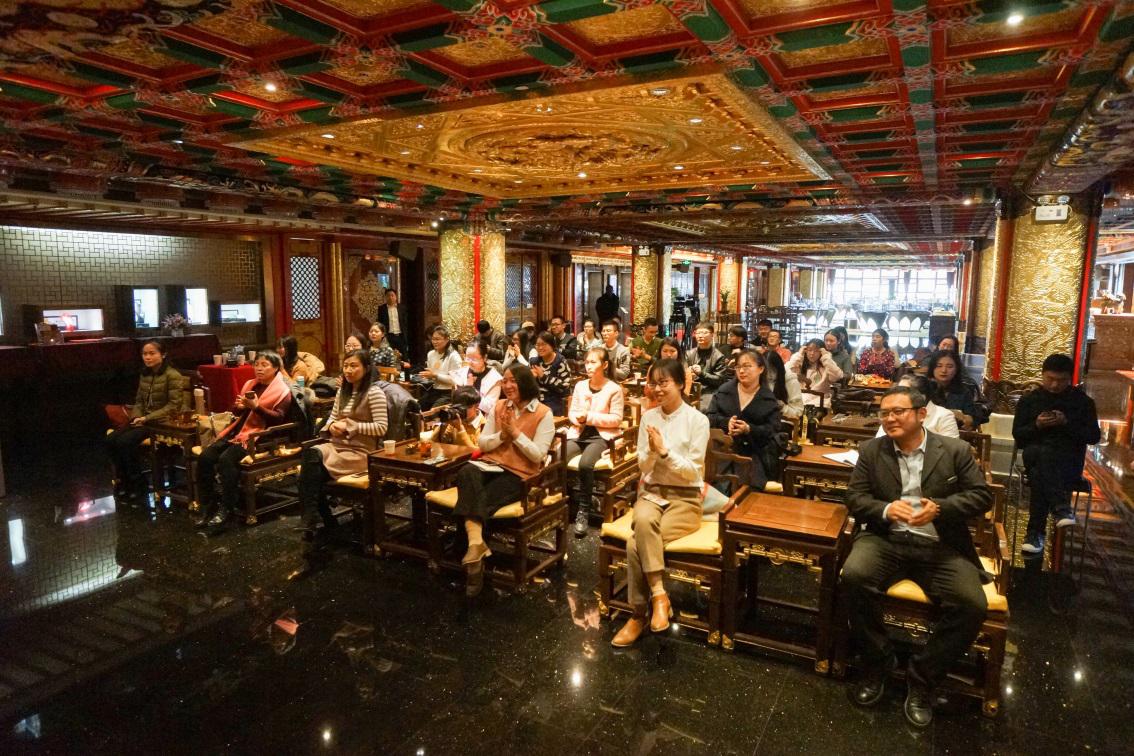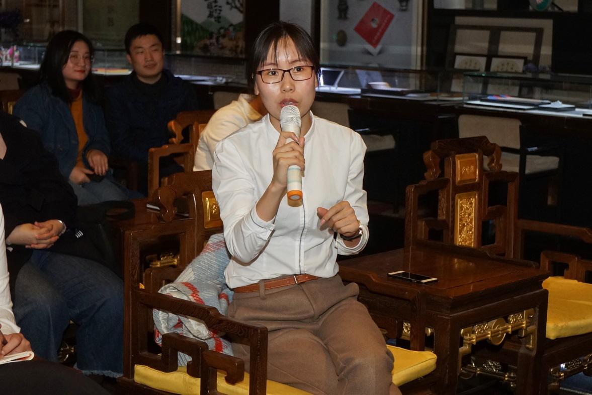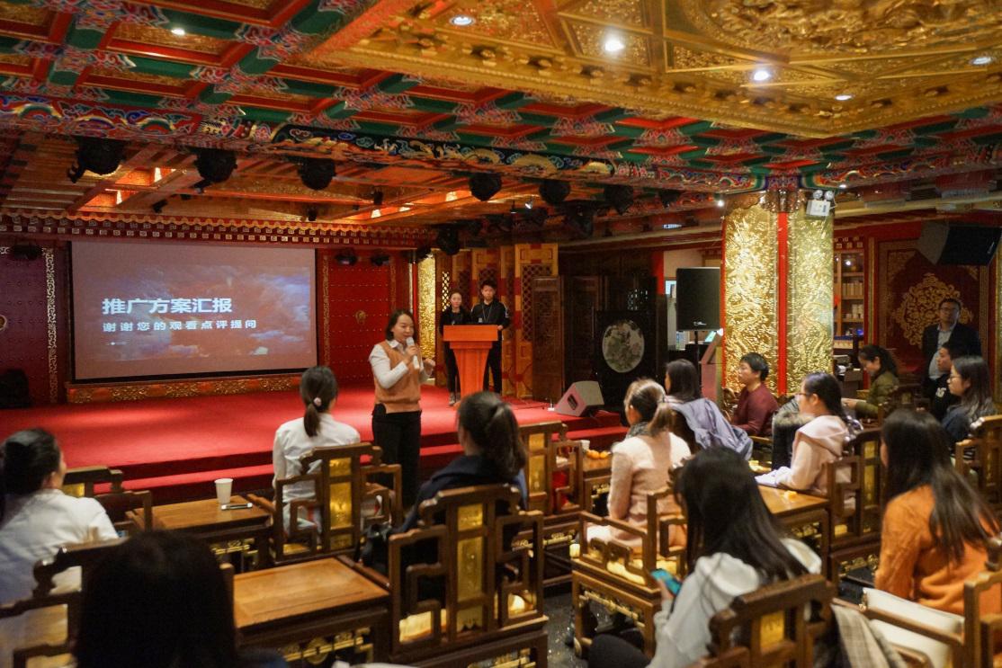 本次分享会由王睿雯和吴斌同学主持。内容涉及亮宝楼内汉服文化、发展历史、礼仪、文创产品开发以及传世珍宝个性化定制的新媒体推广策划共五个部分,分别由乔梁、林馨怡、王雨婷、郭婉婉和张帅5名同学代表每一组依次进行汇报展示。