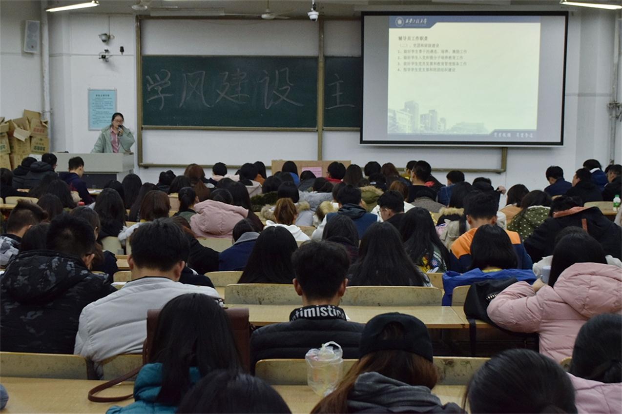 本次班会在我校临潼校区B栋教学楼开展,设B137、B133和B233三个教室,分别由王丽丽、邢烜毓、梁育三位老师进行主讲。他们主要就学生请假旷课等纪律问题、校园安全问题、宿舍安全问题等几个方面展开了讲解。老师还强调了班级负责人的重要性,干部应充分履职,成为老师与学生之间沟通的桥梁,此外学生也应注意班级群的消息通知。