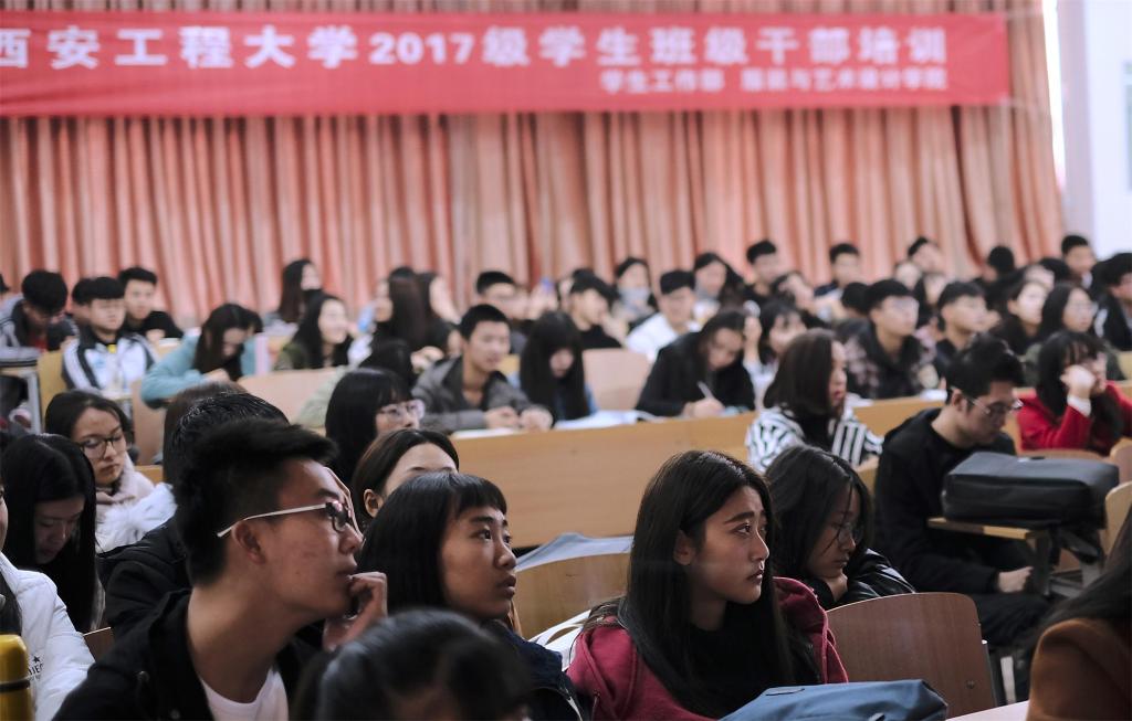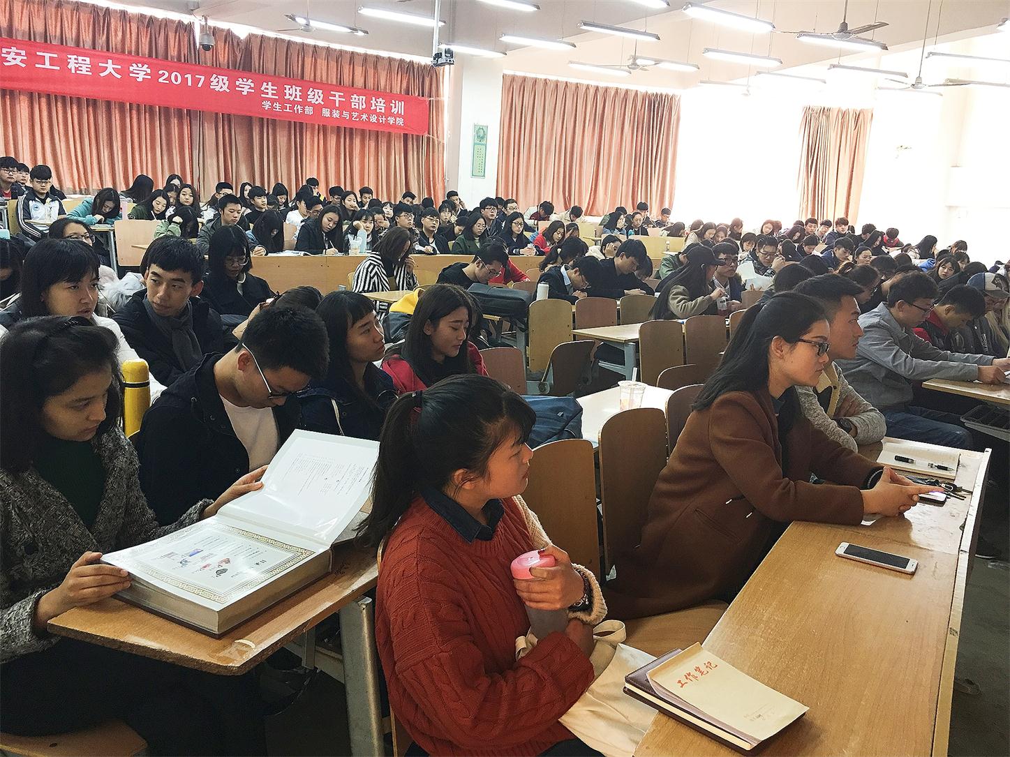 临潼校区B-133教室为学生干部进行第三讲培训。2017级辅导员梁育老师、邢烜毓老师、王丽丽老师出席了此次会议,2016、2017级学生干部共两百余人参加了培训。