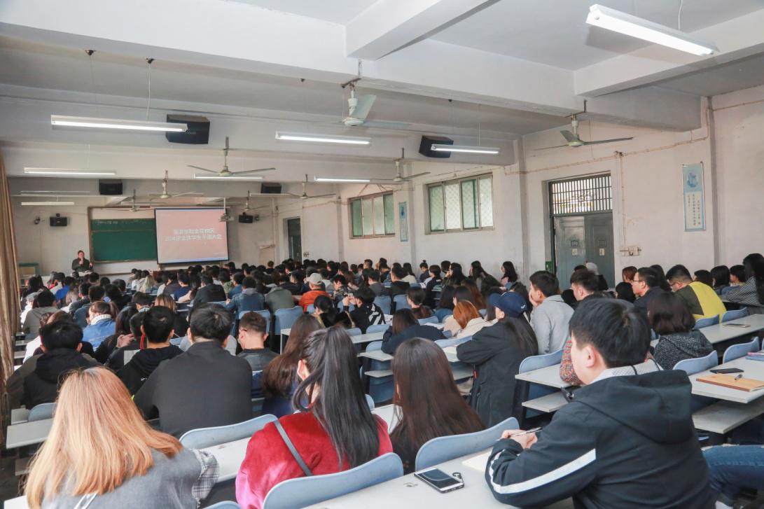 党委书记李筱胜、党委副书记胡小进、辅导员束坤翼、蔺晓珣、孙晨倩以及2014级46个班级的学生干部、宿舍舍长共计200余人参加了会议,大会由捷克论坛