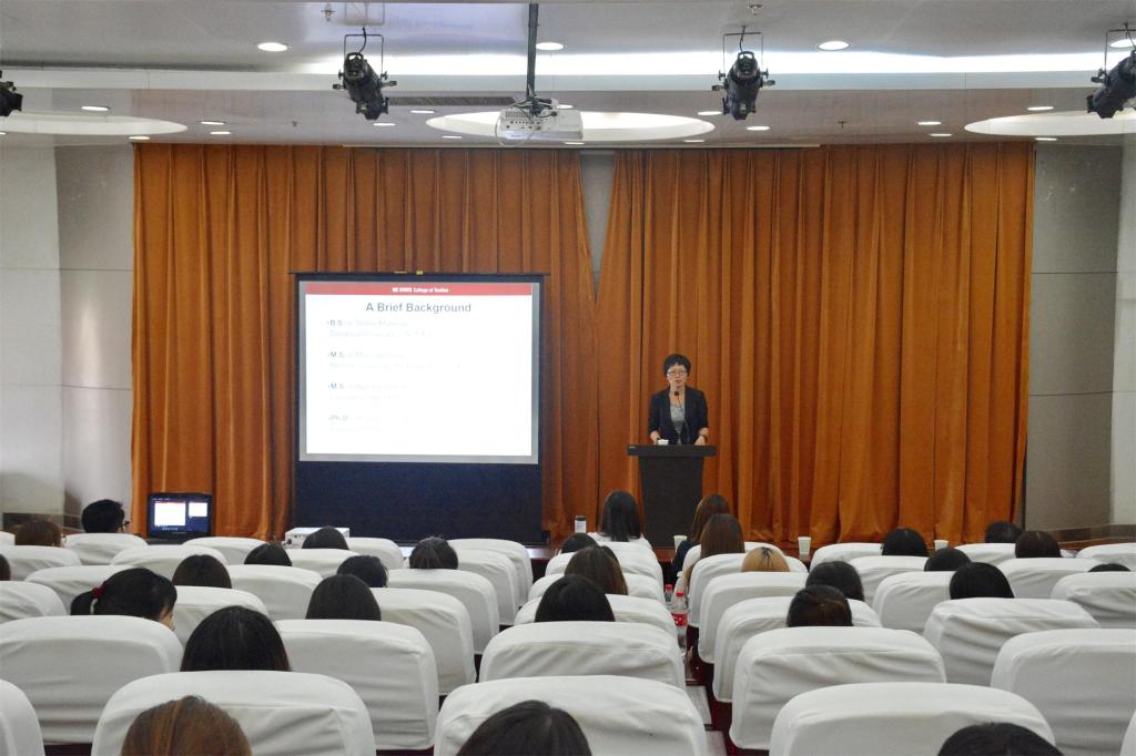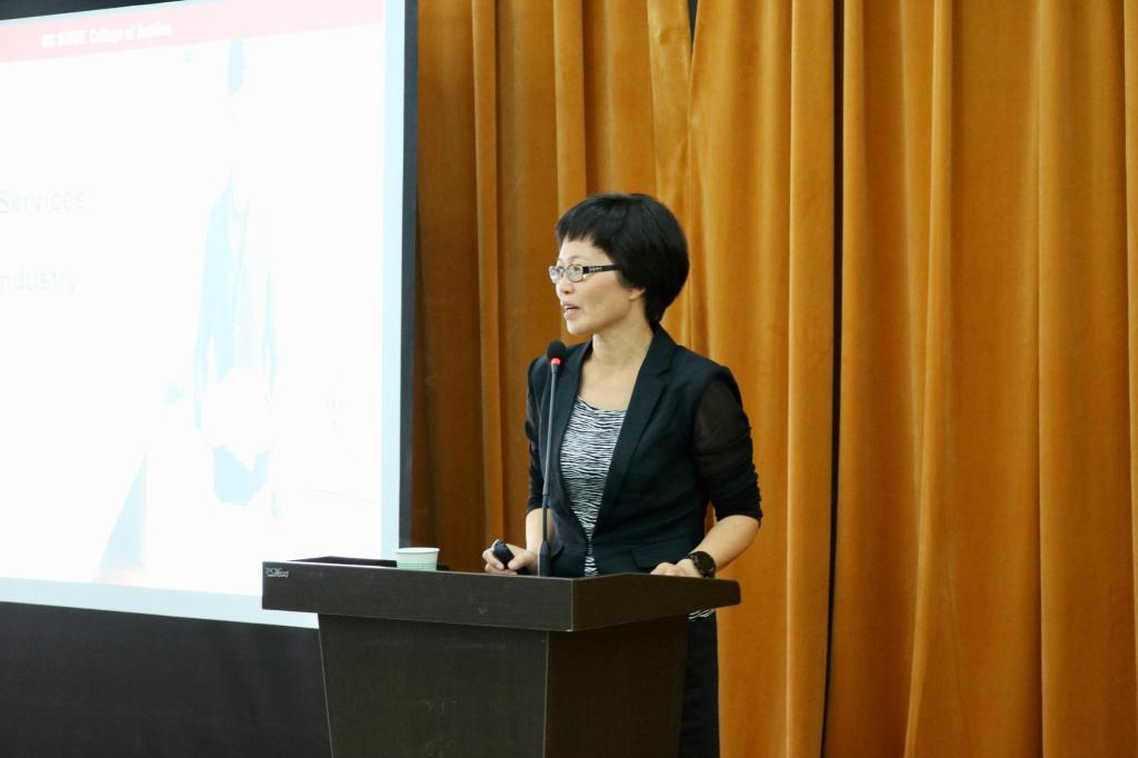 讲座上,徐英娇教授首先对美国北卡罗莱纳州大学做了简要介绍,随后为同学们讲解了品牌与消费者之间的关系,新技术在品牌推广中的应用,抛出了一些发人深省的问题。接下来,结合中美两国的服装消费市场特点,徐英娇教授介绍了美国服装市场的最新发展趋势,提出服装零售商应该具有“前瞻性”脱颖而出的观点。她还提出了一些服装领域的新概念,指出订购服务在服装行业中的应用(Subscription Services In The Fashion Industry)最为关键。她强调,今后的服装营销应充分满足消费者个性化、人性化、体验化需求,才能更好地服务消费者。在互动交流环节中,同学们踊跃提问,徐英娇教授均一一耐心解答,并对同学们认真思考后的提问表示肯定。最后,在大家的掌声中本次报告会圆满结束。徐英娇教授与在场师生合影留念。