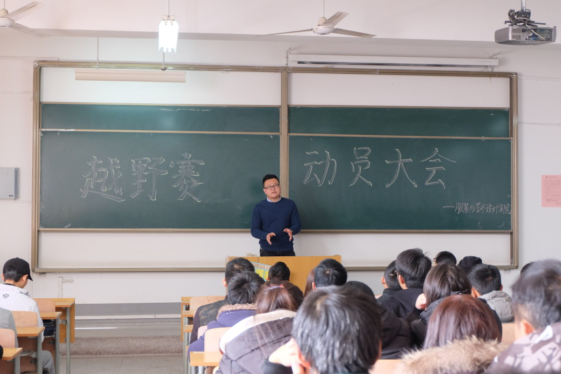 越野赛运动员动员大会。学生工作办公室主任张峰老师、团总支书记马薏雯老师、辅导员黄博宇老师、学生会体育育部所有干事及全体参赛运动员参与了本次动员大会。