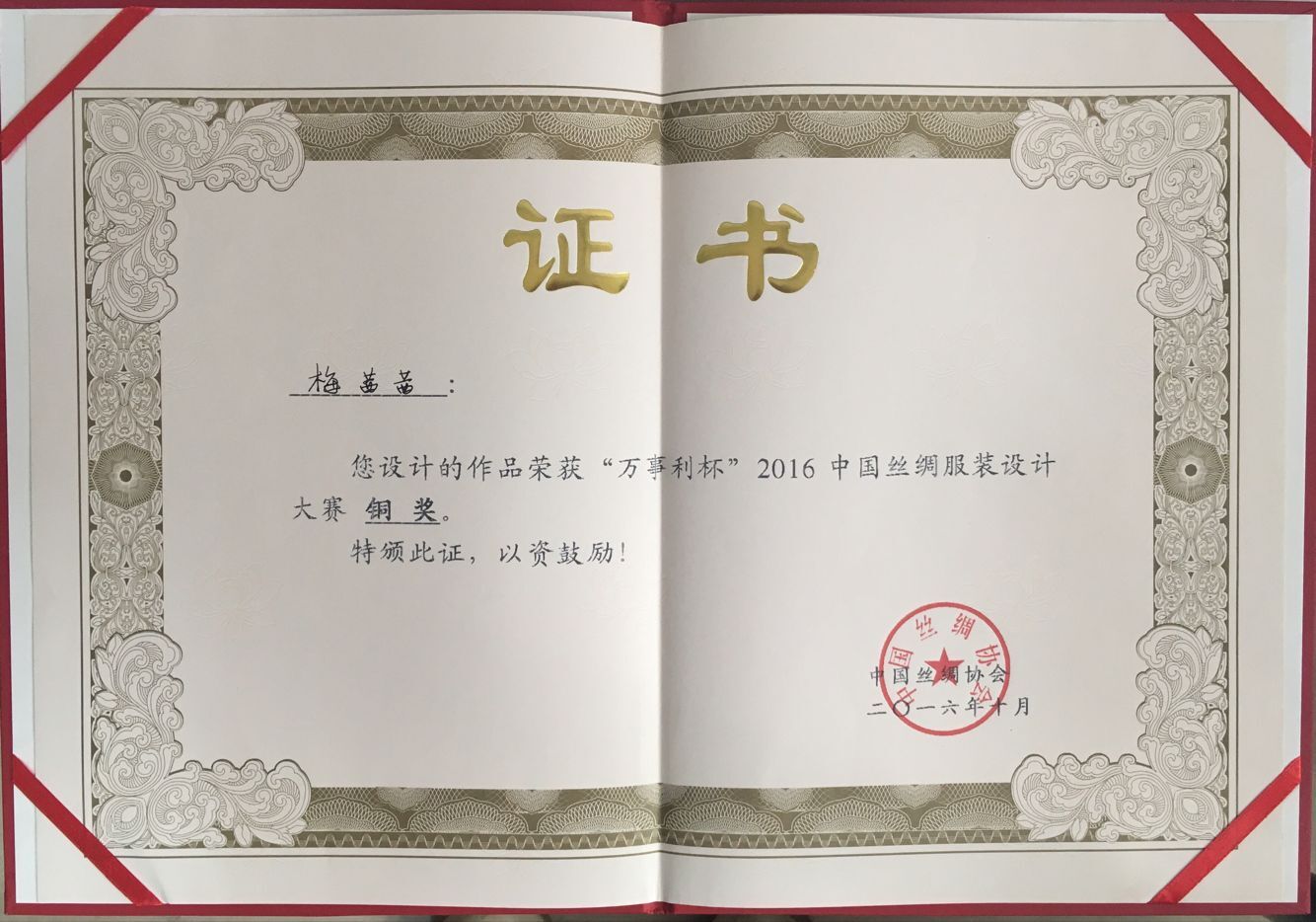 2014级服设卓越班梅茜茜同学的作品《丝路》最终荣获大赛铜奖。