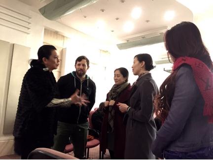 表演厅会见来宾,参加会见的还有表演专业讲师王婷、讲师王博与讲师王佳。