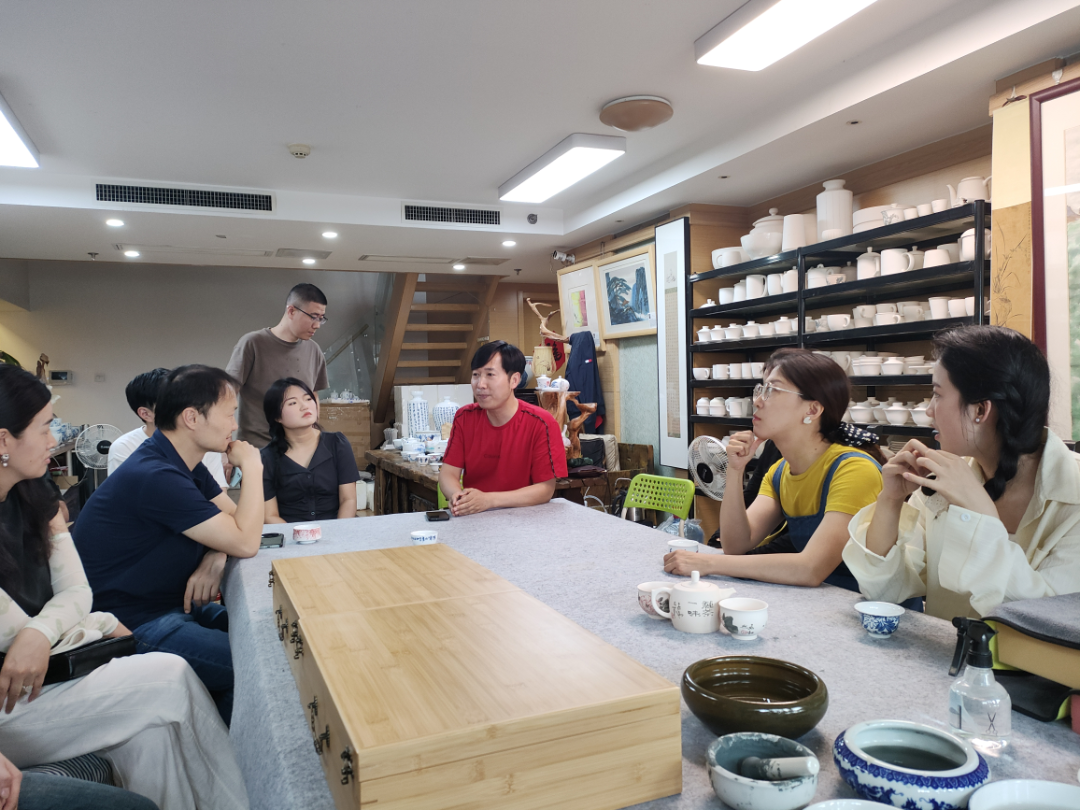 党委副书记马磊、团委书记马薏雯与造型系主任李朝霞副教授带领美术学部分应届生前往陕西卓信文化投资有限公司,调研西安市手绘陶瓷企业及行业就业现状与发展前景。总经理熊伟分享了他的职业经历,从银行工作到金嗓子销售,再到做艺术类杂志,最终专注于艺术品手绘瓷器。自2019年开业以来,公司每年接待数以千计的参观者,旨在将艺术品融入生活,让日常生活变得更具艺术感。