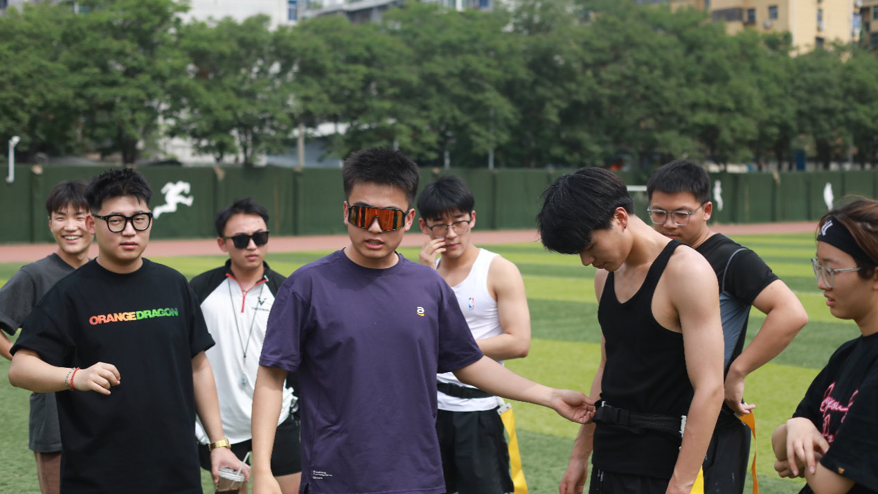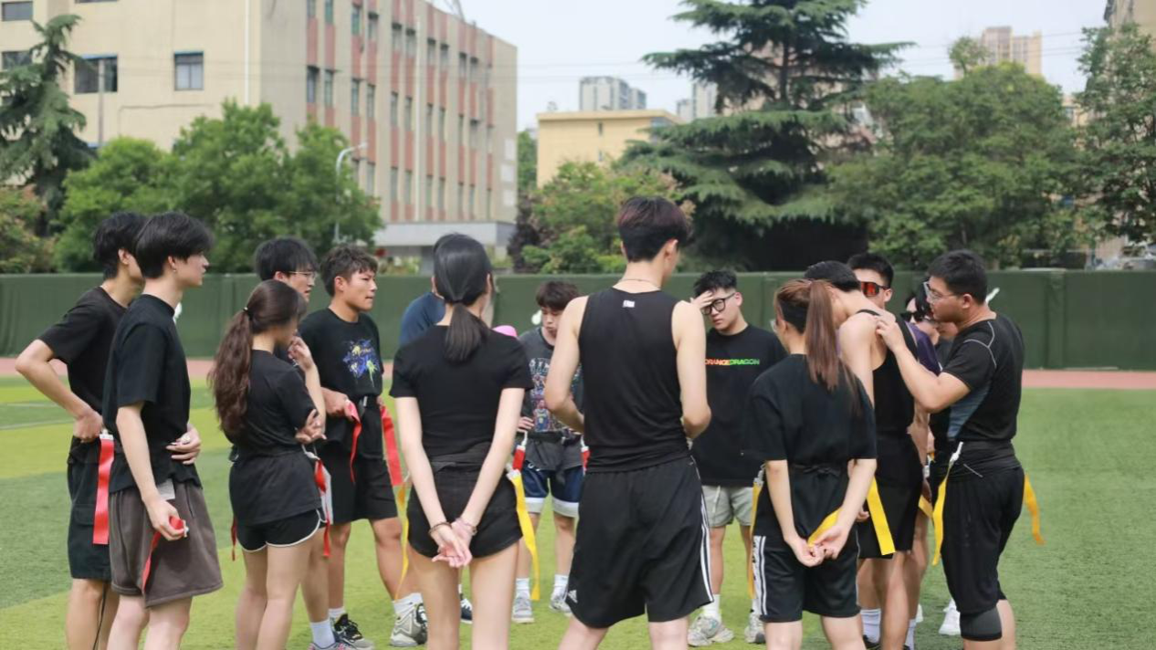 举办“腰旗英姿,艺绘球场”腰旗橄榄球比赛。本次比赛共六支队伍,采用小组淘汰制,赛程2天,通过抽签两两对决。对比传统橄榄球项目激烈的身体对抗,腰旗橄榄球更体现的是无接触、零装备、小场地的“无冲撞”特点,且腰旗橄榄球比赛过程中不允许抱人和推人,通过拉下持球进攻球员腰带上的腰旗来阻止进攻。该项目受伤风险低,适合各年龄段和不同性别的人群参与。