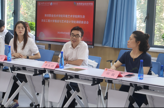 座谈会上,苏博首先对陕西职业技术学院环境艺术设计学院师生的到访表示热烈欢迎,谈了大学生三下乡社会实践的深刻内涵与要求。苏博强调,社会实践是大学生走向社会、了解国情、增长才干的重要途径,应鼓励学生走出校园,深入基层,为社会的高质量发展贡献青春力量。晏先稳介绍了本校的社会实践开展情况和工作经验,强调了专业与产业对接的重要性,以及如何结合中国传统文化历史来推动社会的发展。期待两校之间能够加强交流,互相学习,共同进步。